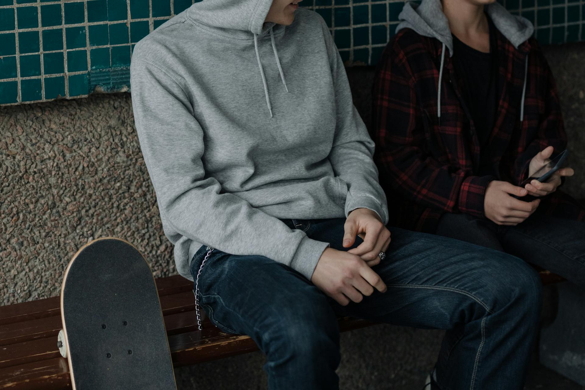 people-sitting-on-a-wooden-bench-wearing-hoodies Photo by cottonbro studio